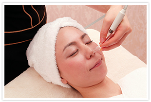 高周波をお顔に当てることで、肌にハリとつやをもたらします。